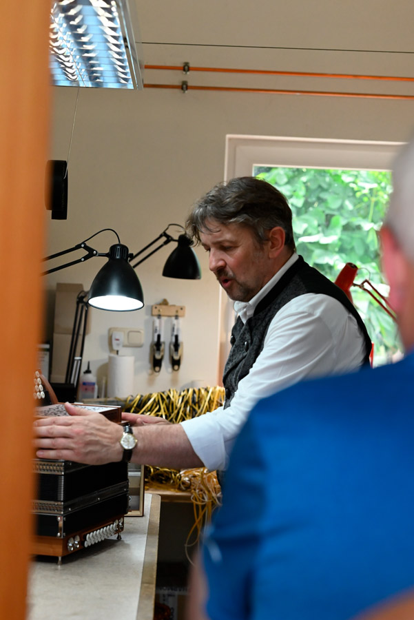 Am 15. Juni 2025 hatten wir unsere Pforten geöffnet und wir haben unsere Werkstätten gezeigt, unsere Heran- Vorgehenweise erklärt, wenn und wie wir Eure Harmonikas bauen. Lieben Dank an unsere sehr interessierten Besucher. Wir sind aus Erklären und Vorführen gar nicht mehr rausgekommen. Harmonika ausprobieren konnte man natürlich auch. Das mach ma wieder – versprochen!